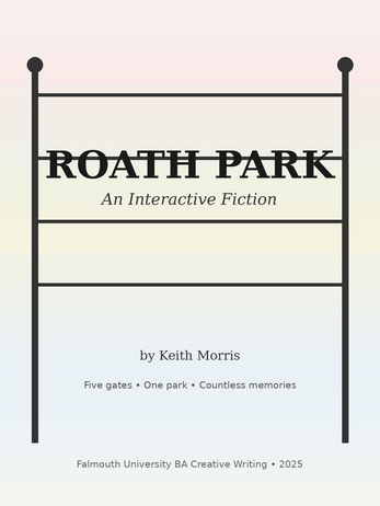 Roath park has five gates. They are shown randomly. As you walk through you unravel a life story.